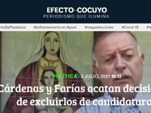 Arias Cárdenas, quien aspiraba repetir como gobernador de Zulia, grabó un video en el que manifiesta que acatará la decisión, aunque se refiere a presuntas irregularidades en el proceso: “Agradecerle al partido la expresión que tuvo (…) Presiones, amenazas, todo lo que ocurrió con las actas que seguramente se va a investigar y sancionar a los responsables”, afirma en el video.
