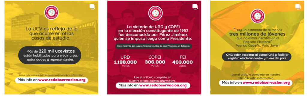 La Red de Observación Electoral Asamblea de Educación continua en su campaña, a través de las redes sociales, para educar a la población, especialmente a los jóvenes, en los valores democráticos expresados a través del voto, incluyendo la lucha histórica de los venezolanos por lograr el derecho a participar en elecciones libres, directas y secretas.