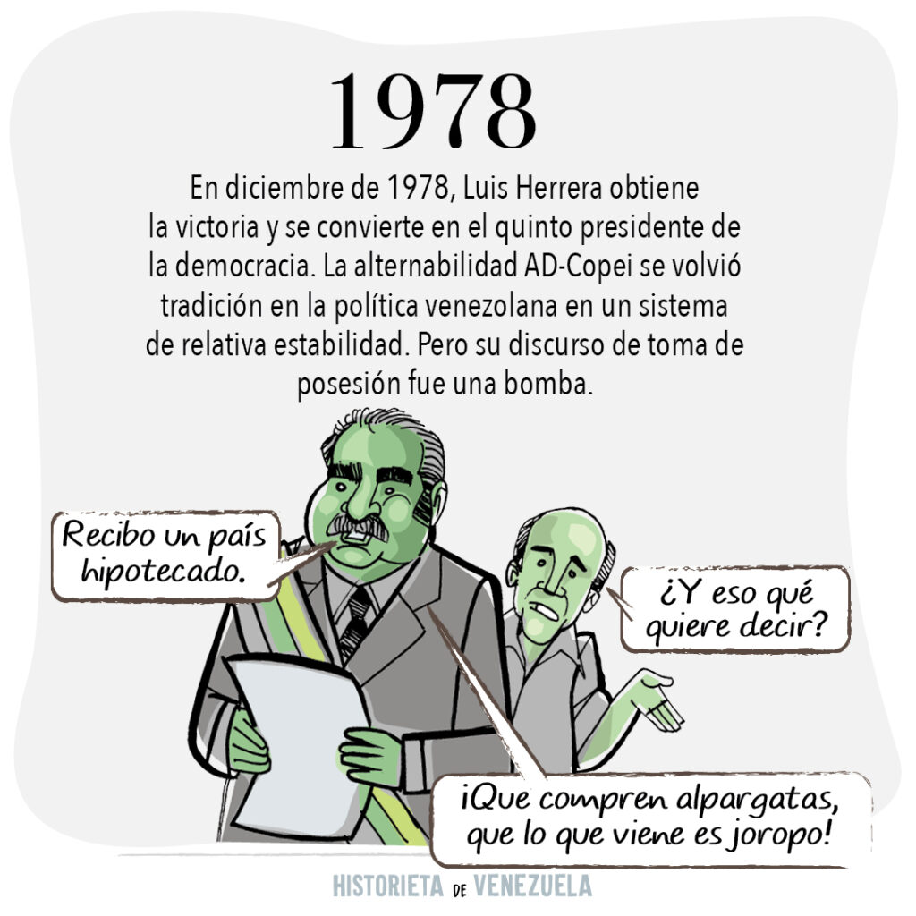 El domingo 3 de diciembre de 1978, se celebró ordenada, pacífica y democráticamente una nueva jornada electoral presidencial. La quinta consecutiva desde 1958 y, por tercera vez, con transferencia de mando entre dos fuerzas políticas adversarias, esta vez, de Acción Democrática a Copei, las cuales juntaron 90% de la votación total, consolidando el bipartidismo en la escena política nacional.