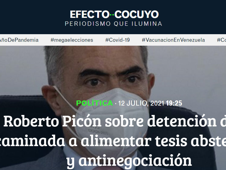 Leer másRector Roberto Picón sobre detención de Guevara: va encaminada a alimentar tesis abstencionistas y antinegociación