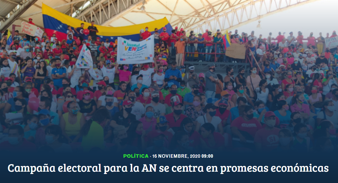 Efecto Cocuyo Pese a las dificultades generadas por la falla de los servicios básicos, la escasez de gasolina, la pandemia por el COVID-19 y los señalamientos de faltas en garantías electoral, las organizaciones políticas iniciaron desde comienzos de este mes de noviembre la campaña para participar en los comicios a la Asamblea Nacional, pautados para el próximo 6 de diciembre. […]